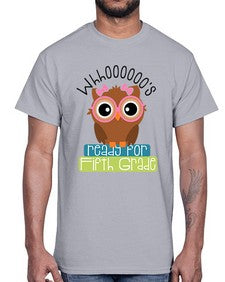 whooos ready for fifth grade 999#- fifth grade- Cotton Tee