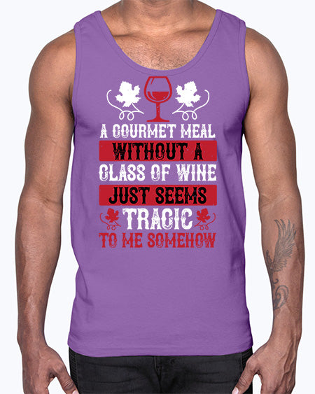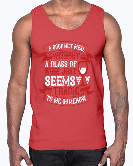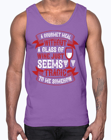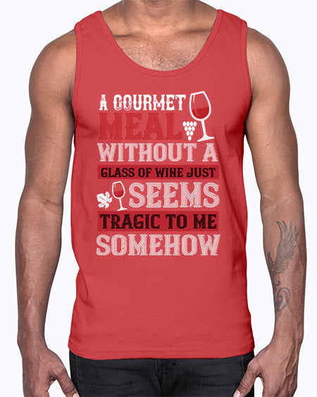 a gourmet meal without a glass of wine just seems tragic to me 528#- wine- Cotton Tank