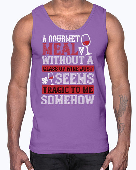 a gourmet meal without a glass of wine 526#- wine- Cotton Tank