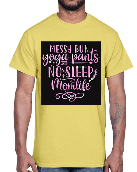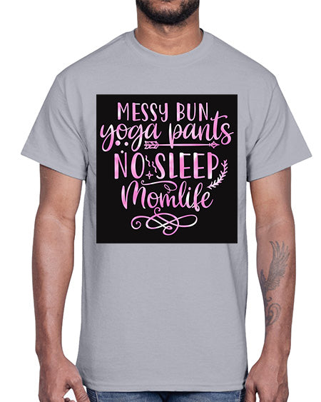 Messy bun yoga pants no sleep momlife 424#- yoga- Cotton Tee