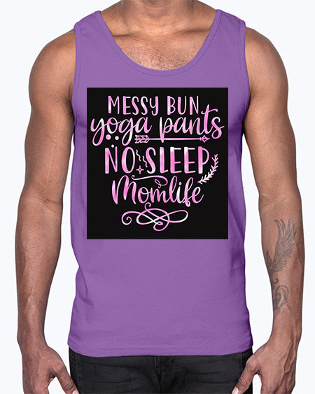Messy bun yoga pants no sleep momlife 424#- yoga- Cotton Tank