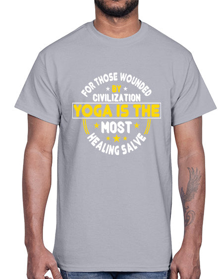 for those wounded by civilization yoga is the most healing salve 221#- yoga- Cotton Tee
