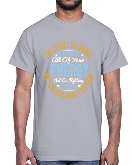 the secret of change is to focus all of your energy not on fighting the old but on building the new 561#- yoga- Cotton Tee