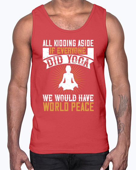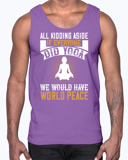 all kidding aside if everyone did yoga we would have world peace 105#- yoga- Cotton Tank