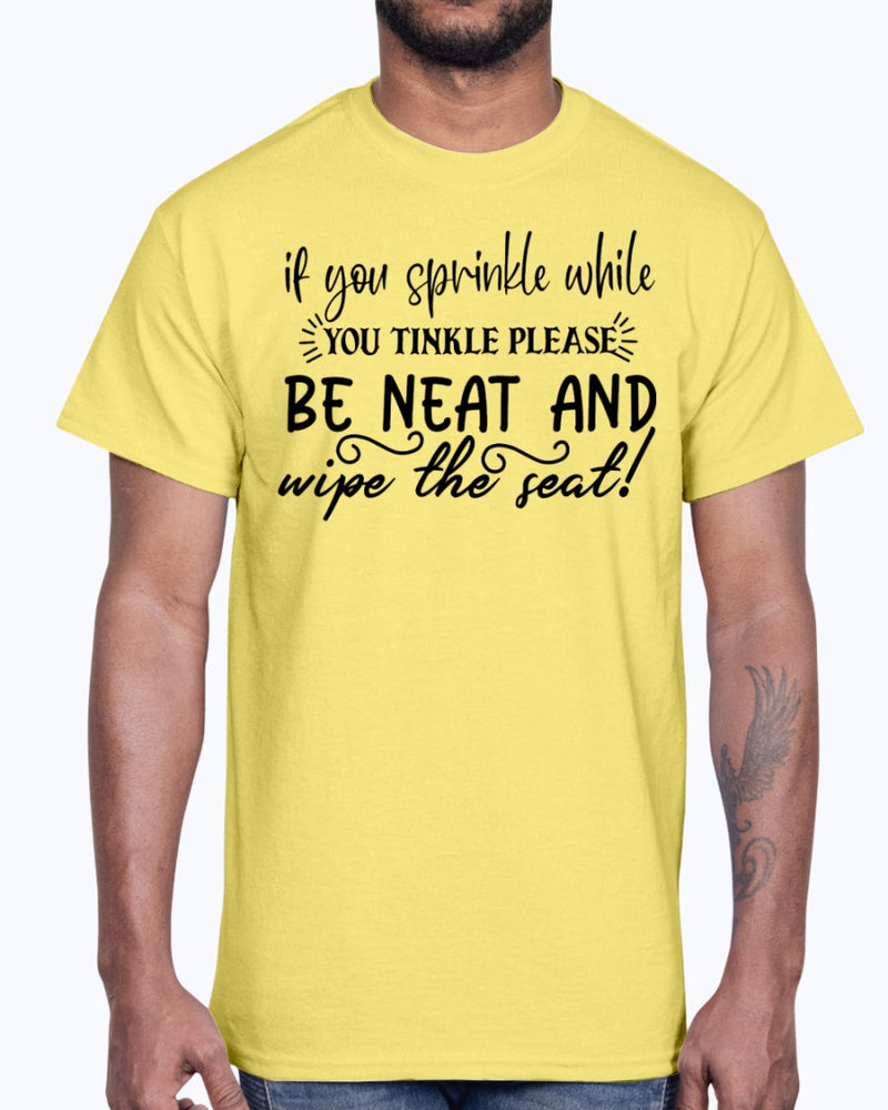 if you sprinkle while you linkle please be neat and wipe the seat!- Bathroom- Cotton Tee
