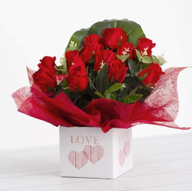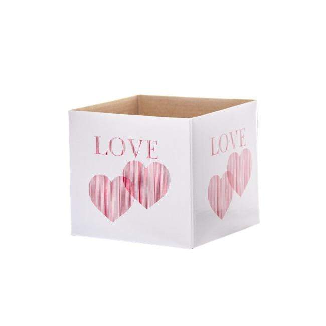 Posy Box Mini Love 2 Hearts Red White (13x12cmH)