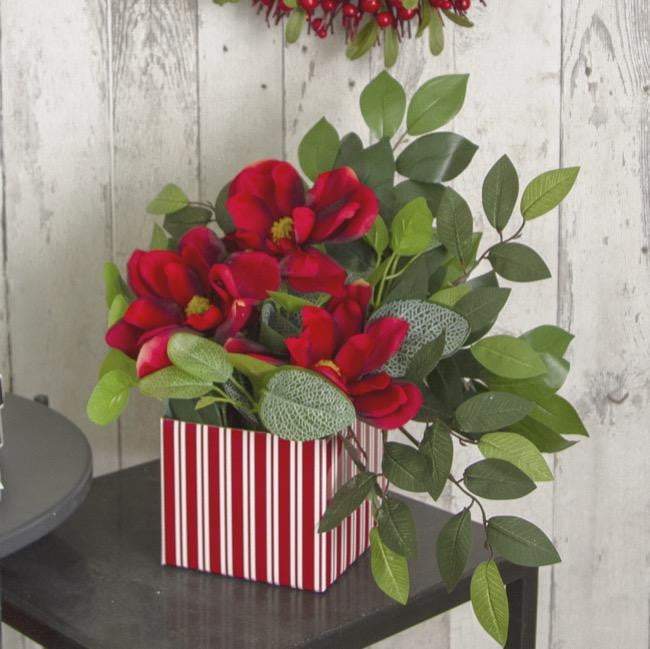 Posy Box White Mini Stripes Red White (13x12cmH)
