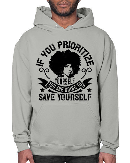 If you prioritize yourself you are going to save yourself Style 21# - black afro- Hoodie
