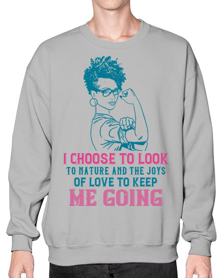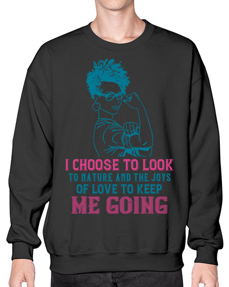 I choose to look to nature and the joys of love to keep me going Style 43# - black afro- Sweatshirt - Crew