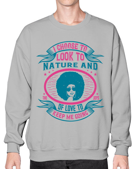 I choose to look to nature and the joys of love to keep me going Style 29# - black afro- Sweatshirt - Crew