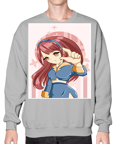 Cute and cool girl red long hair 166# - anime- Sweatshirt - Crew