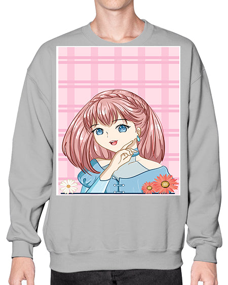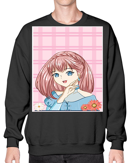 Cute and beautiful princess pink short hair 72# - anime- Sweatshirt - Crew