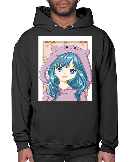 Cute and beautiful girl with blue dress game 22# - anime- Hoodie