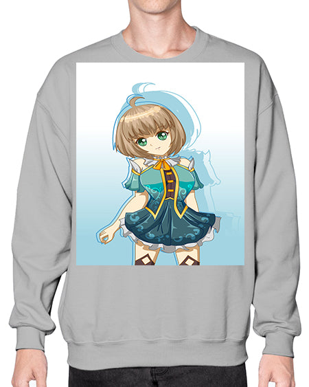 Cute and beautiful girl with blue dress game 22# - anime- Sweatshirt - Crew