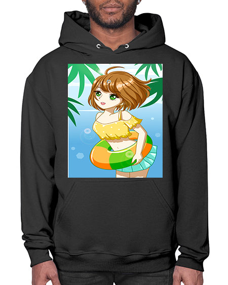 Cute and beautiful girl swimming in beach in the summer 176# - anime- Hoodie