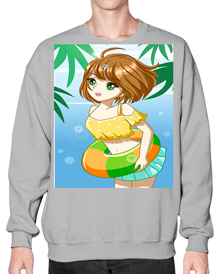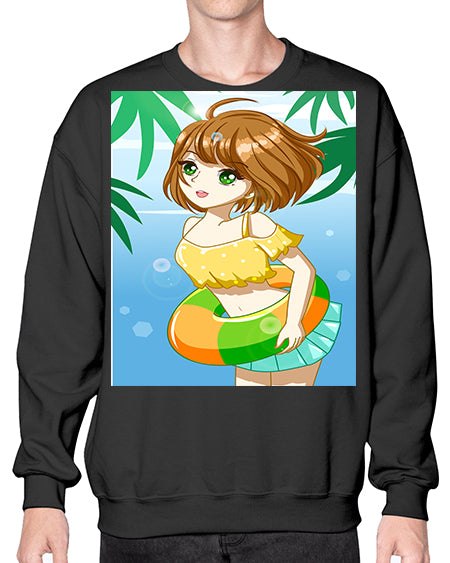 Cute and beautiful girl swimming in beach in the summer 176# - anime- Sweatshirt - Crew