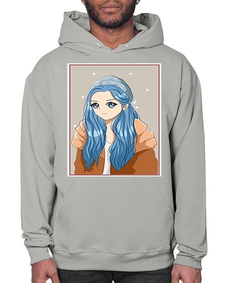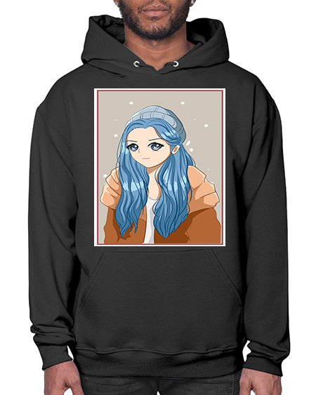 Cute and beautiful girl long blue hair in the winter 142# - anime- Hoodie