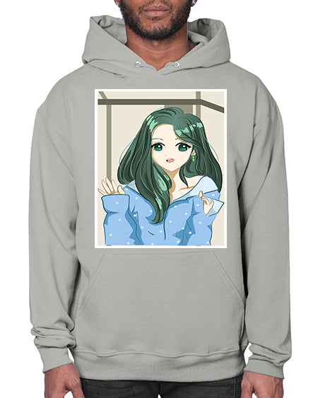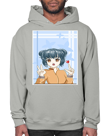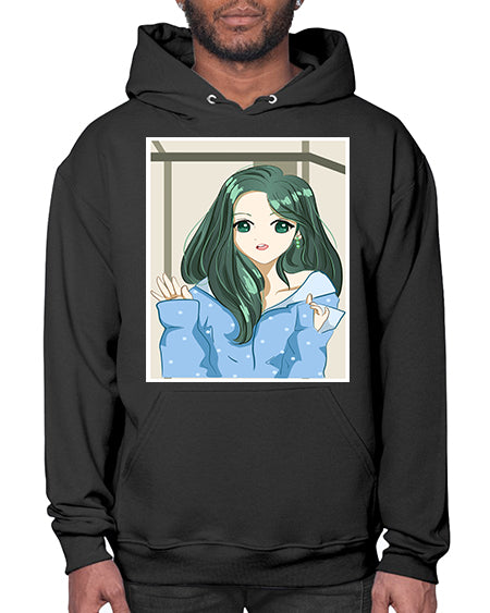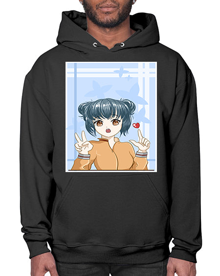 Cute and beautiful girl dark blue hair with love 74# - anime- Hoodie