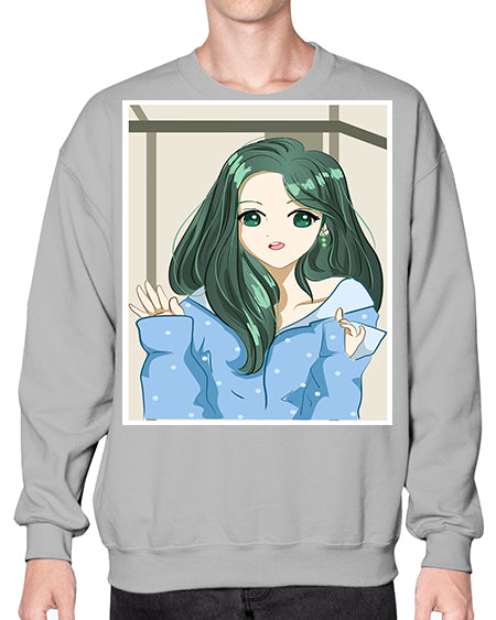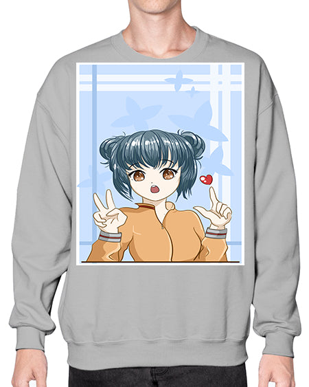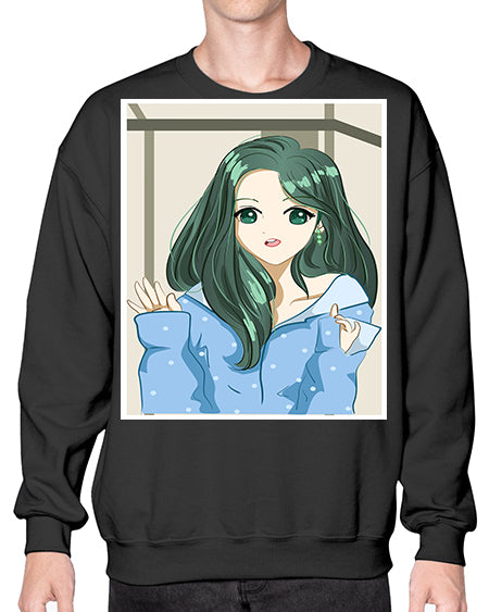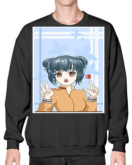 Cute and beautiful girl dark blue hair with love 74# - anime- Sweatshirt - Crew