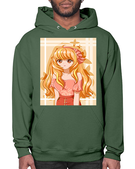 Cute and beautiful girl blonde hair with ribbon 110# - anime- Hoodie