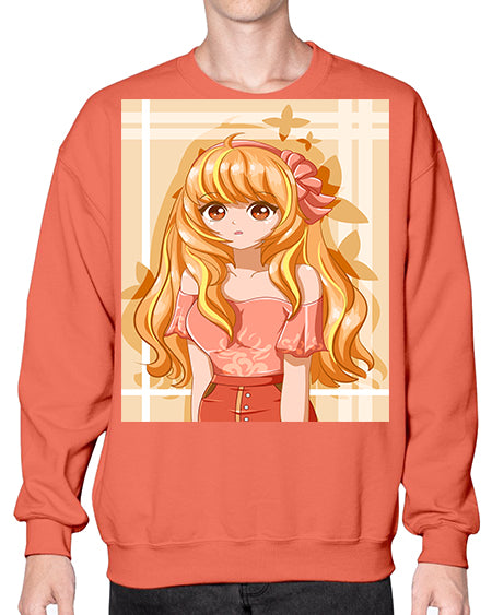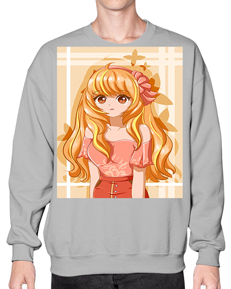 Cute and beautiful girl blonde hair with ribbon 110# - anime- Sweatshirt - Crew