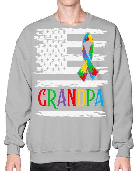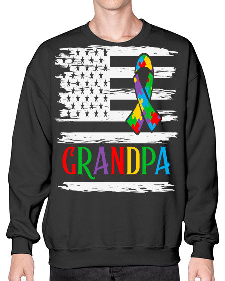 autism grandpa american flag 39# - autism- Sweatshirt - Crew
