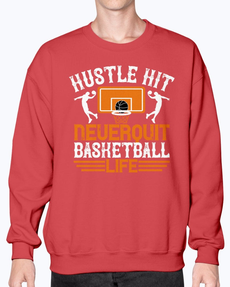 Hustle, hit. Never quit basketball life - Basketball- Sweatshirt - Crew