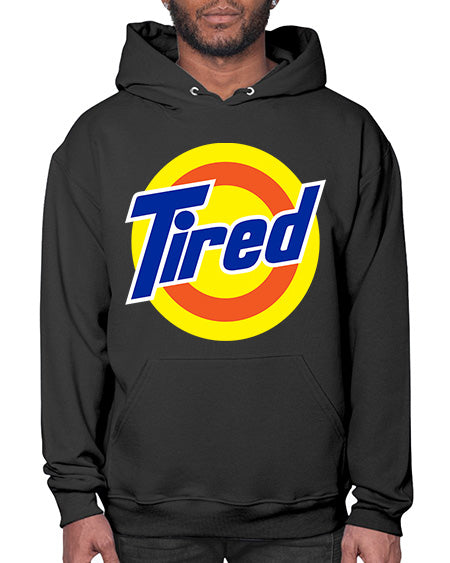 tired 19# - black words and phrases- Hoodie