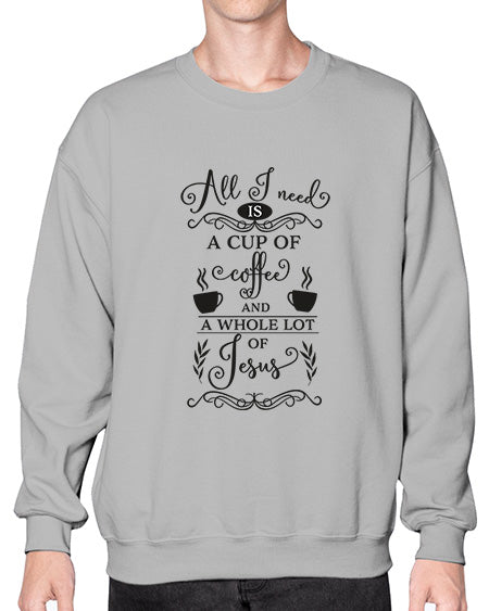 all i need is a cup of coffee and a whole lot of jesus 538# - coffee- Sweatshirt - Crew
