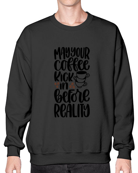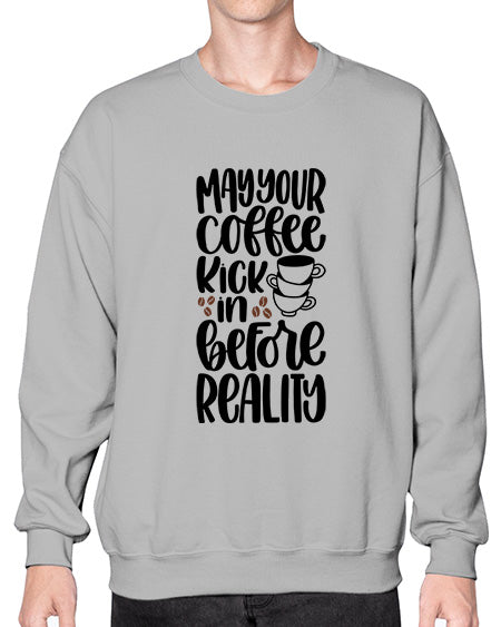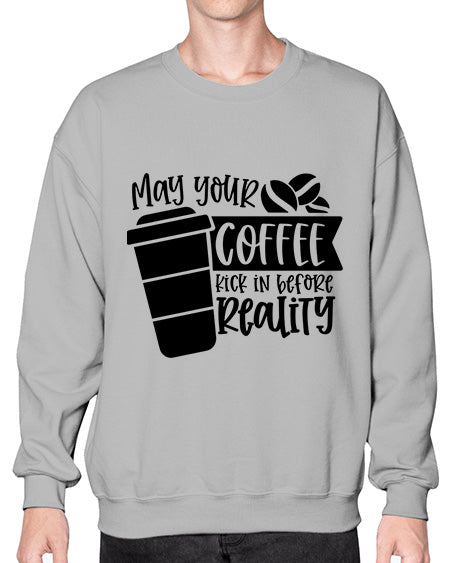 may your coffee kick in before reality 1383# - coffee- Sweatshirt - Crew