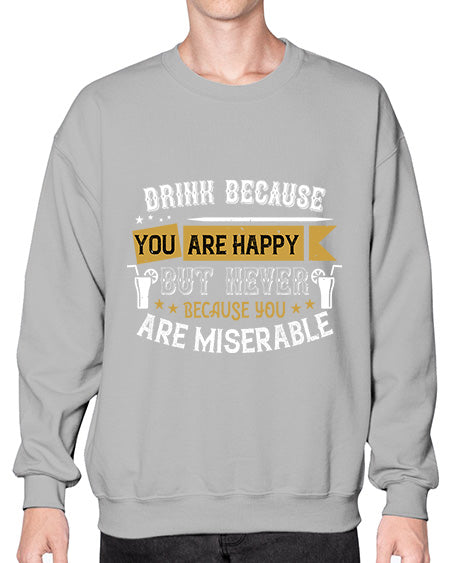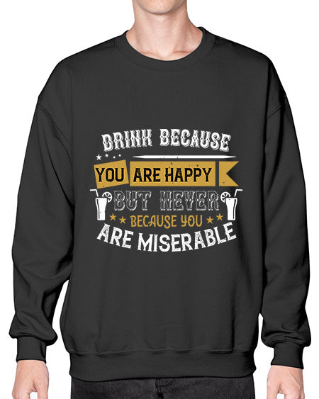 drink because you are happy but never because you are miserable 146# - drinking- Sweatshirt - Crew