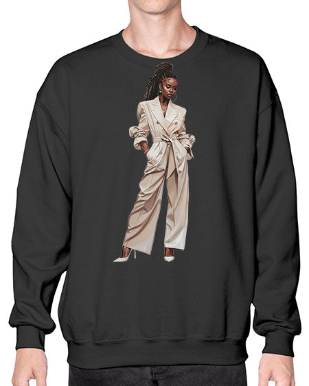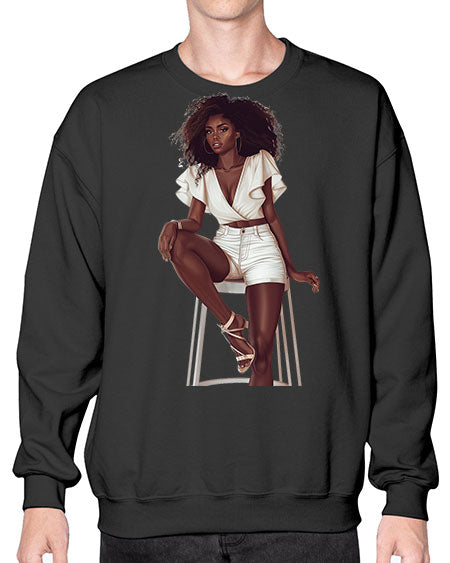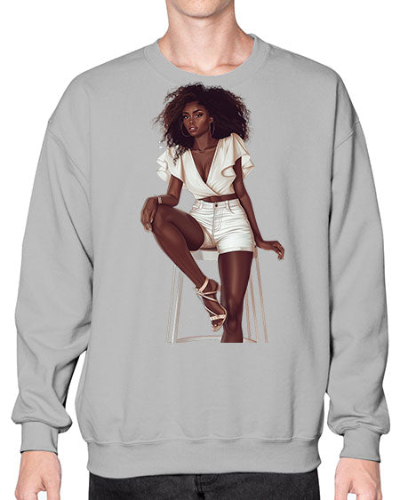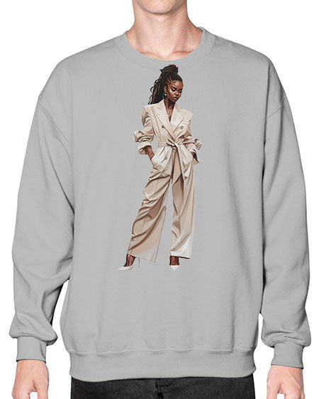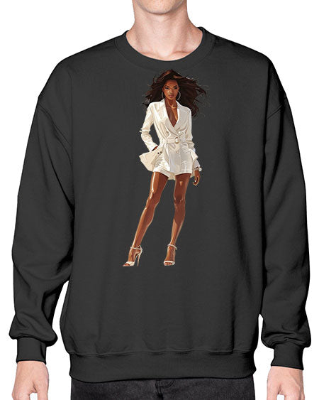 fashion girl in white 85# - fashion- Sweatshirt - Crew