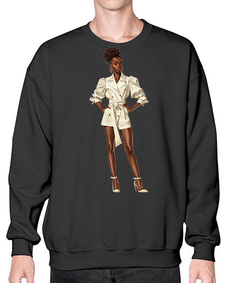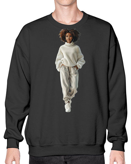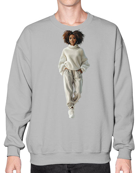 fashion girl in white 83# - fashion- Sweatshirt - Crew