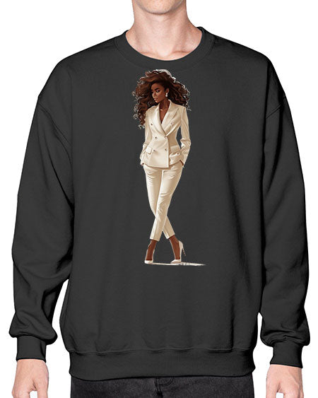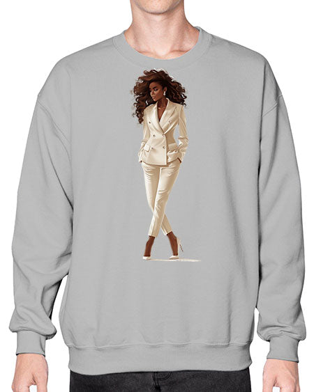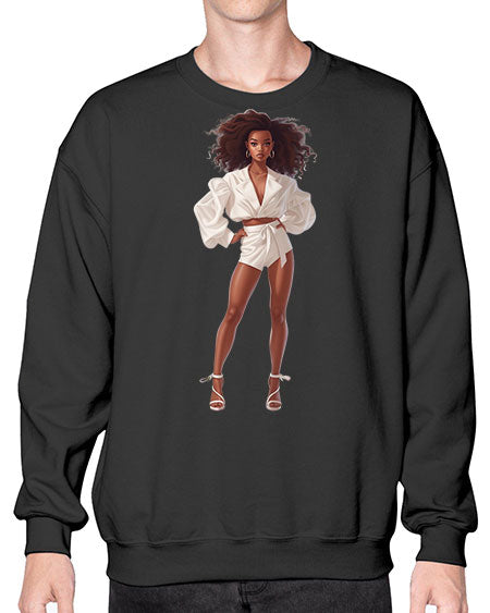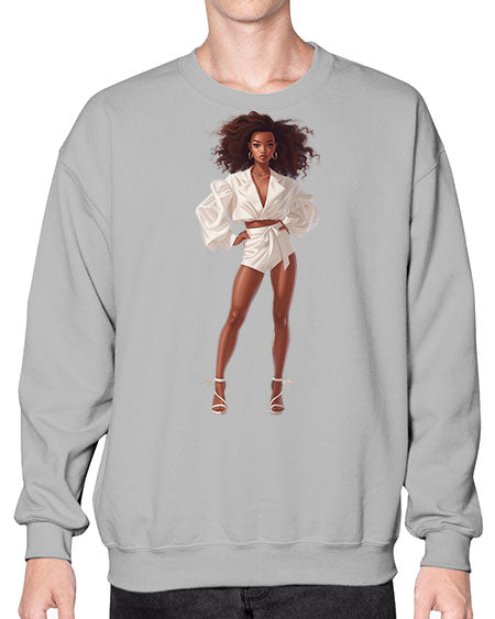 fashion girl in white 81# - fashion- Sweatshirt - Crew