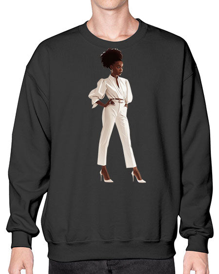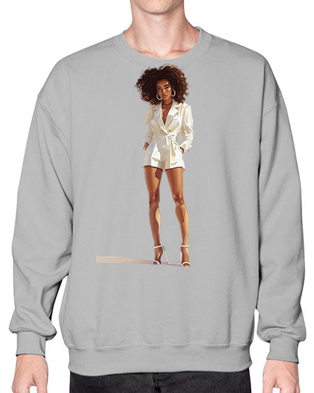 fashion girl in white 73# - fashion- Sweatshirt - Crew