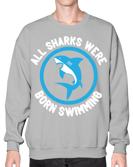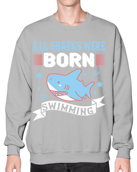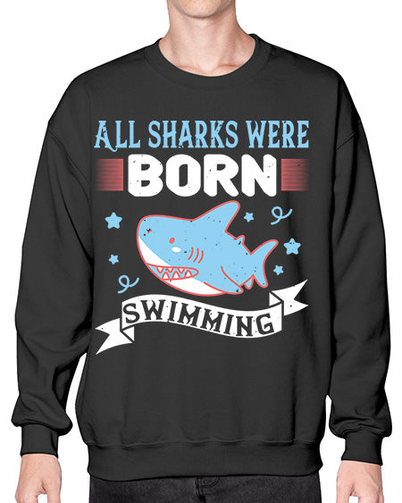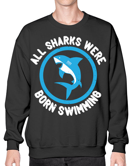All sharks were born swimming Style 100# - shark-fish- Sweatshirt - Crew
