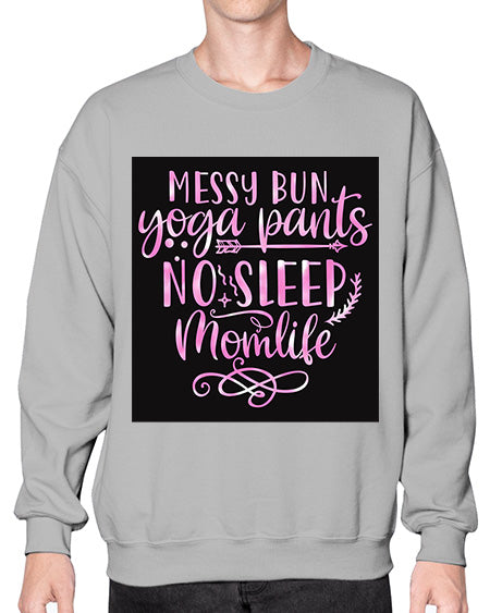 Messy bun yoga pants no sleep momlife 424# - yoga- Sweatshirt - Crew