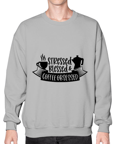 stressed blessed coffee obsessed 1584# - coffee- Sweatshirt - Crew