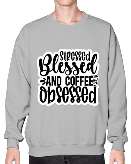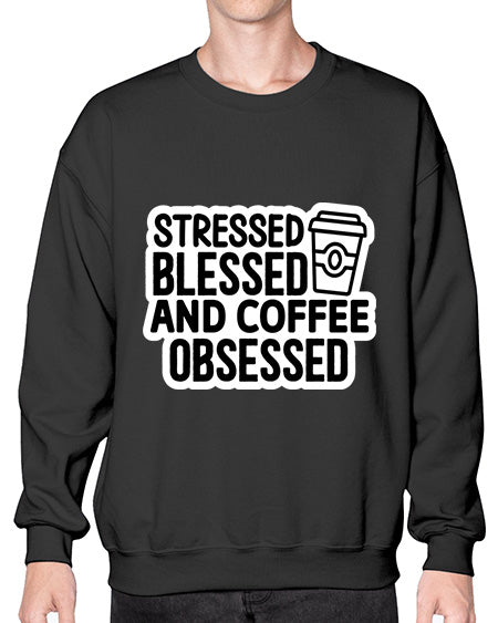 Stressed Blessed and Coffee Obsessed 1582# - coffee- Sweatshirt - Crew