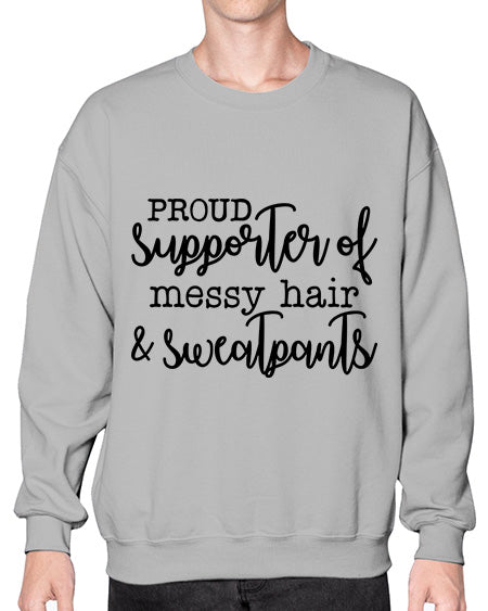 proud supporter of messy hair and sweatpants 1002# - funny- Sweatshirt - Crew