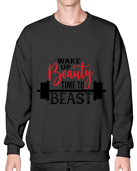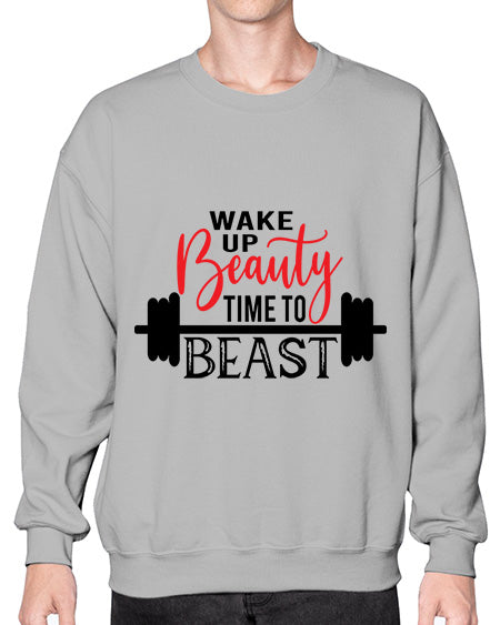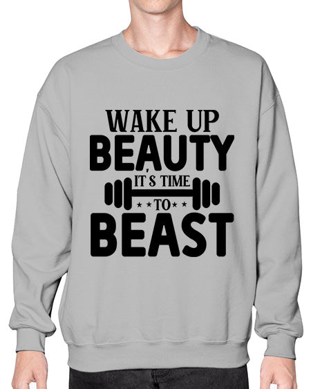 Wake Up Beauty Its Time to Beast 592# - gym- Sweatshirt - Crew