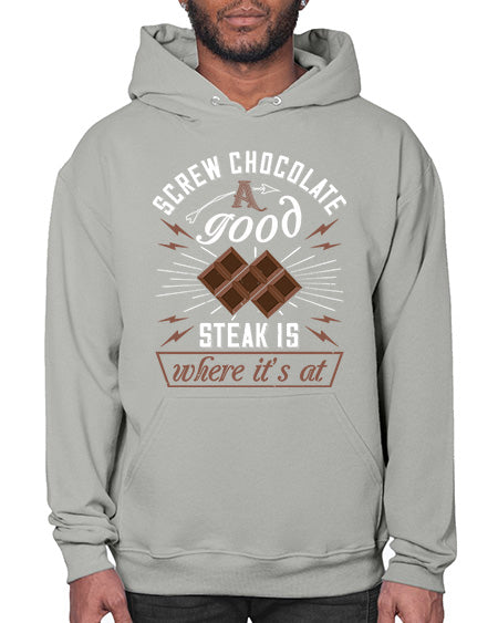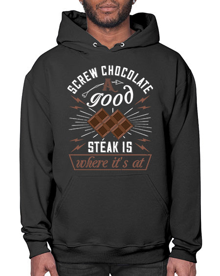 screw chocolate a good steak is where its at 384# - chocolate- Hoodie