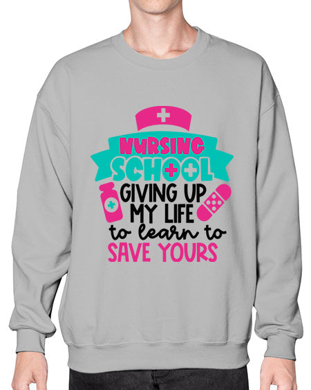 Nursing School Giving Up My Life To Learn To Save Yours Style Style 1277# - nurse- Sweatshirt - Crew