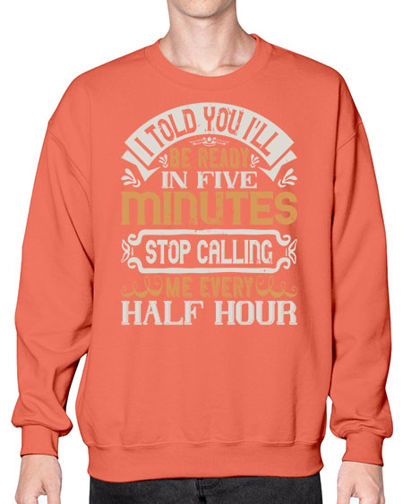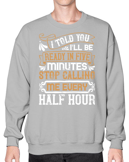 I told you Ill be ready in FIVE minutes stop calling me every half hourr Style 68# - pig- Sweatshirt - Crew