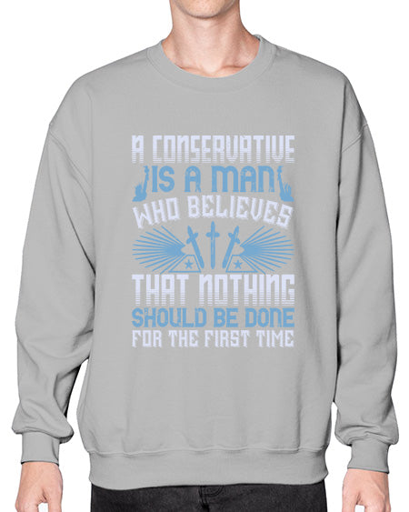 A conservative is a man who believes that nothing 176# - graphic- Sweatshirt - Crew