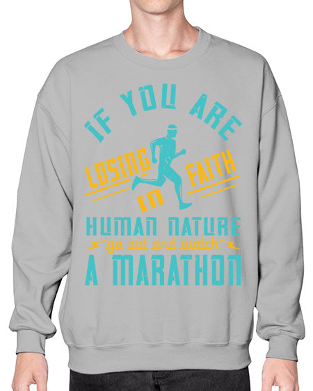 if you are losing faith in human nature go out and watch a marathon 322# - running- Sweatshirt - Crew
