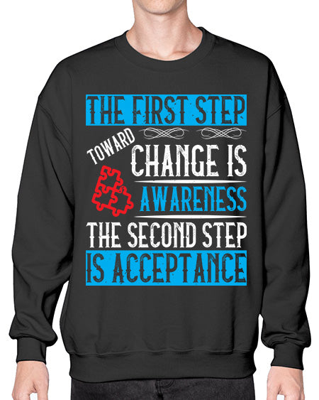 The first step toward change is awareness The second step is acceptance Style 23# - Self awareness- Sweatshirt - Crew