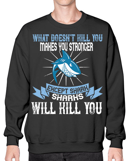 what doesnt kill you makes you stronger except shark sharks will kill you Style 4# - shark-fish- Sweatshirt - Crew
