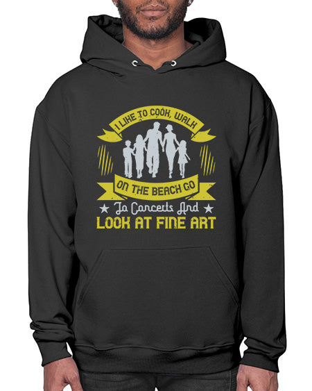 i like to cook walk on the beach go to concerts and look at fine art 292# - walking- Hoodie