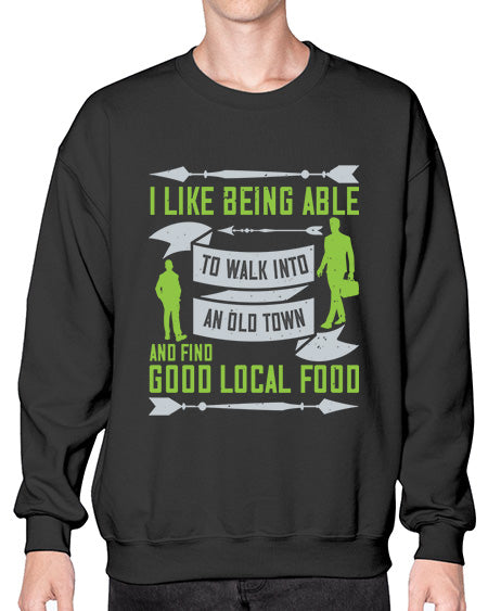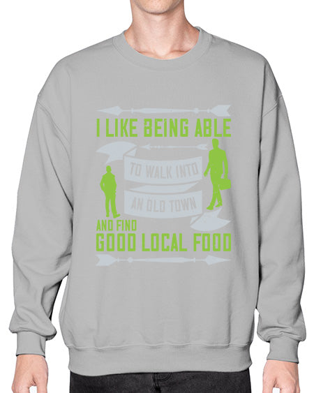 i like being able to walk into an old town and find good local food 291# - walking- Sweatshirt - Crew